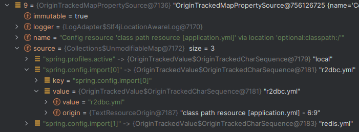 ちなみに各 PropertySource#source に、 Map として設定値が格納されている: